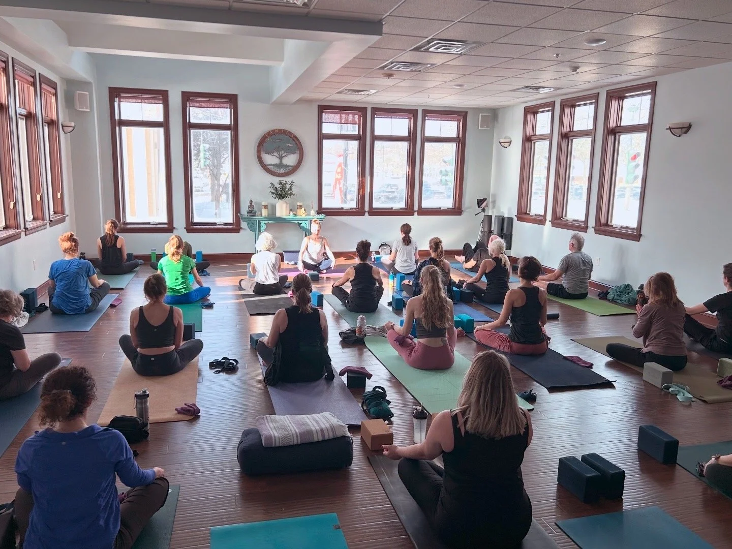 Our warm, welcoming studio is located in Fairport Village, NY, across the street from Bonnie & Clyde’s / Starbucks and above Salvatore’s Pizza. Enjoy a wide variety of classes, friendly instructors, and a cozy feel. Offering in-studio and livestream classes for all levels.